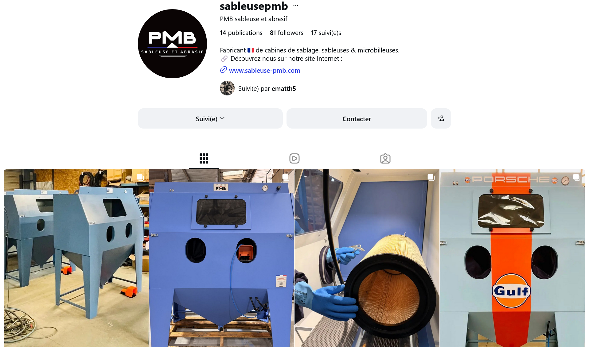 Rejoignez PMB Sableuse et abrasif sur Facebook et Instagram